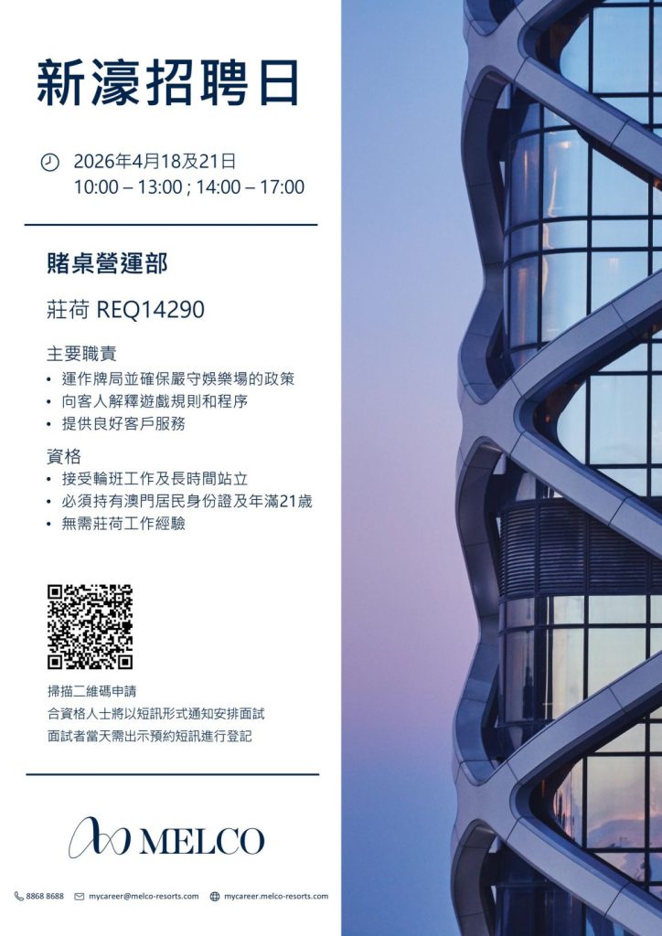 必須持有澳門居民身份證及年滿21歲無需莊荷工作經驗