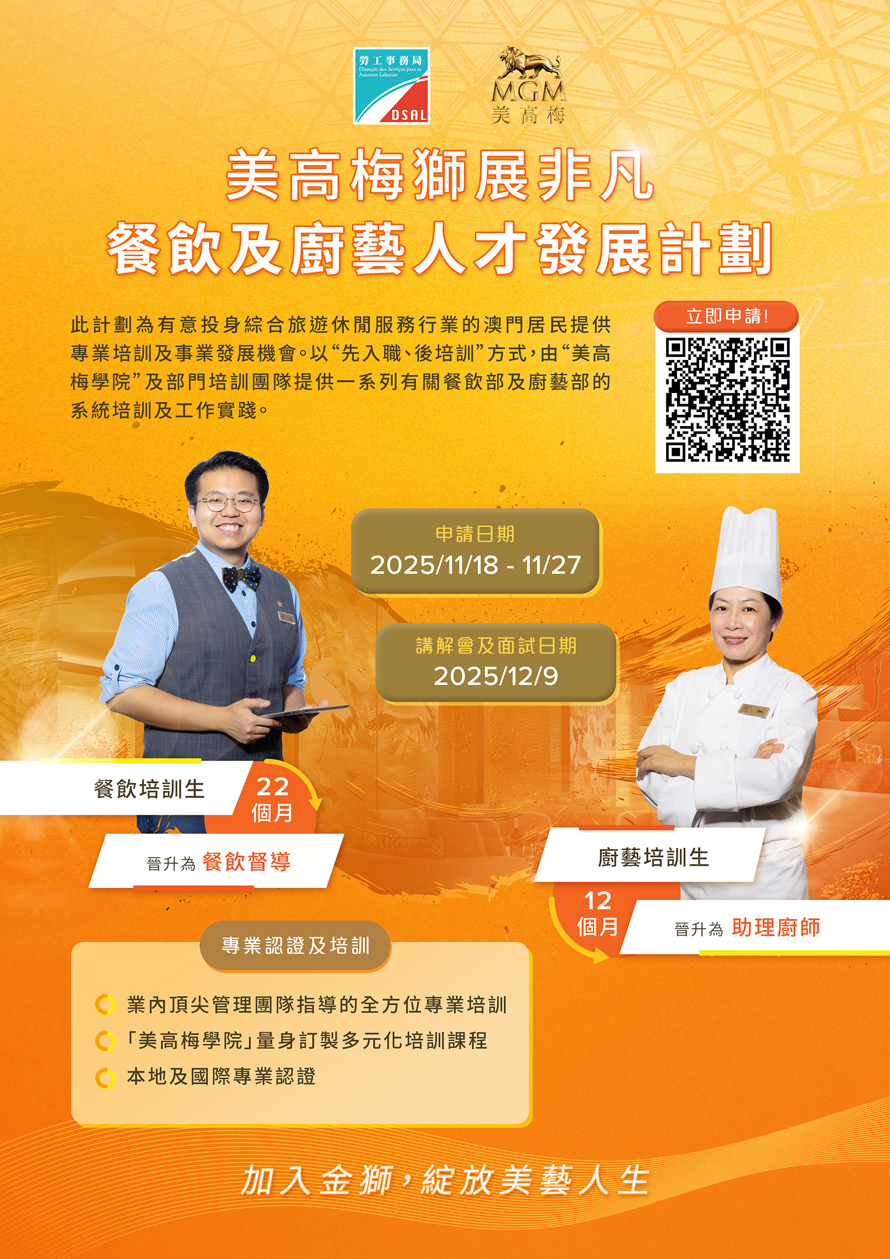 美高梅獅展非凡餐飲及廚藝人才發展計劃